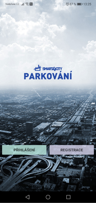 Jelikož budete novým uživatelem aplikace, je třeba se zaregistrovat. Klikněte tedy prosím na tlačítko registrace.
