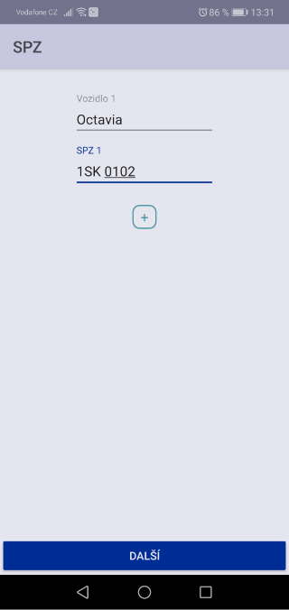 V tomto kroku si můžete zvolit až 3 vozidla, pro které budete aplikaci využívat. Pojmenujte si je a zadejte jejich SPZ.